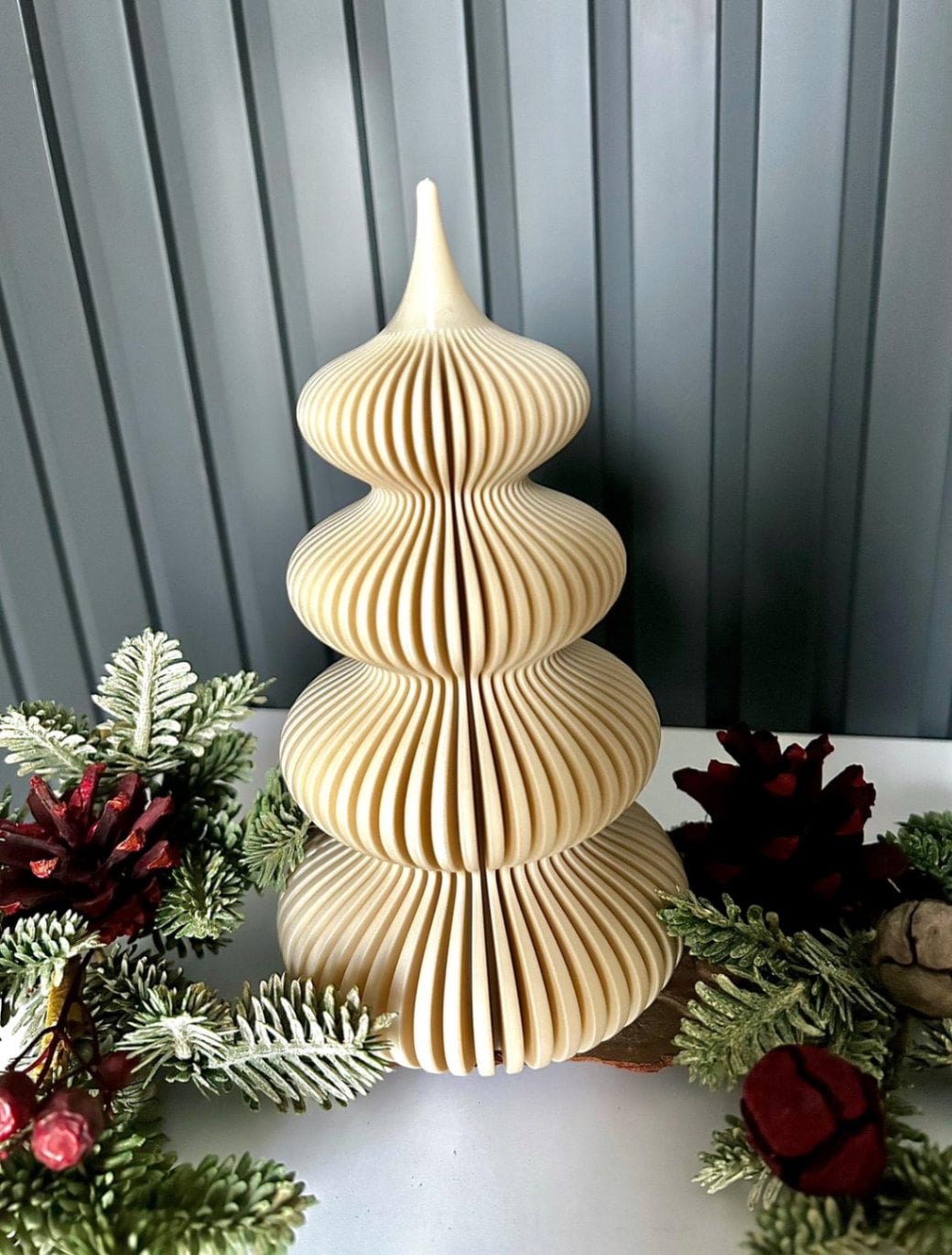 Nowoczesna choinka świąteczna drukowana w 3D - idealna jako dekoracja do salonu, sypialni, na komodę czy świąteczny stół. Ma charakterystyczny, falowany kształt, który wygląda jak mała rzeźba i świetnie łapie światło, dzięki czemu prezentuje się naprawdę efektownie. Po włożeniu lampeczki LED choinka delikatnie świeci od środka, tworząc przyjemny, ciepły klimat – idealny na zimowe wieczory. Choinka wykonana jest z biotworzywa, które jest lekkie i przyjazne dla środowiska. Każda sztuka powstaje w specjalnym trybie druku, dzięki czemu jest jednolita, estetyczna i ma gładkie, eleganckie wykończenie. Wymiary (średnia): ok. 9,5 × 9,5 × 18 cm Cena dotyczy jednej choinki 18 cm. Do każdej choinki dodajemy GRATIS lampeczkę LED, żeby od razu była gotowa do podświetlenia. Można również zamówić mniejsze rozmiary: 25 cm – 55 zł 10 cm – 20 zł Dostępne różne kolory - pełną paletę znajdziesz na naszej stronie: printaszek.pl Możliwa wysyłka lub odbiór osobisty. W razie pytań - pisz śmiało!