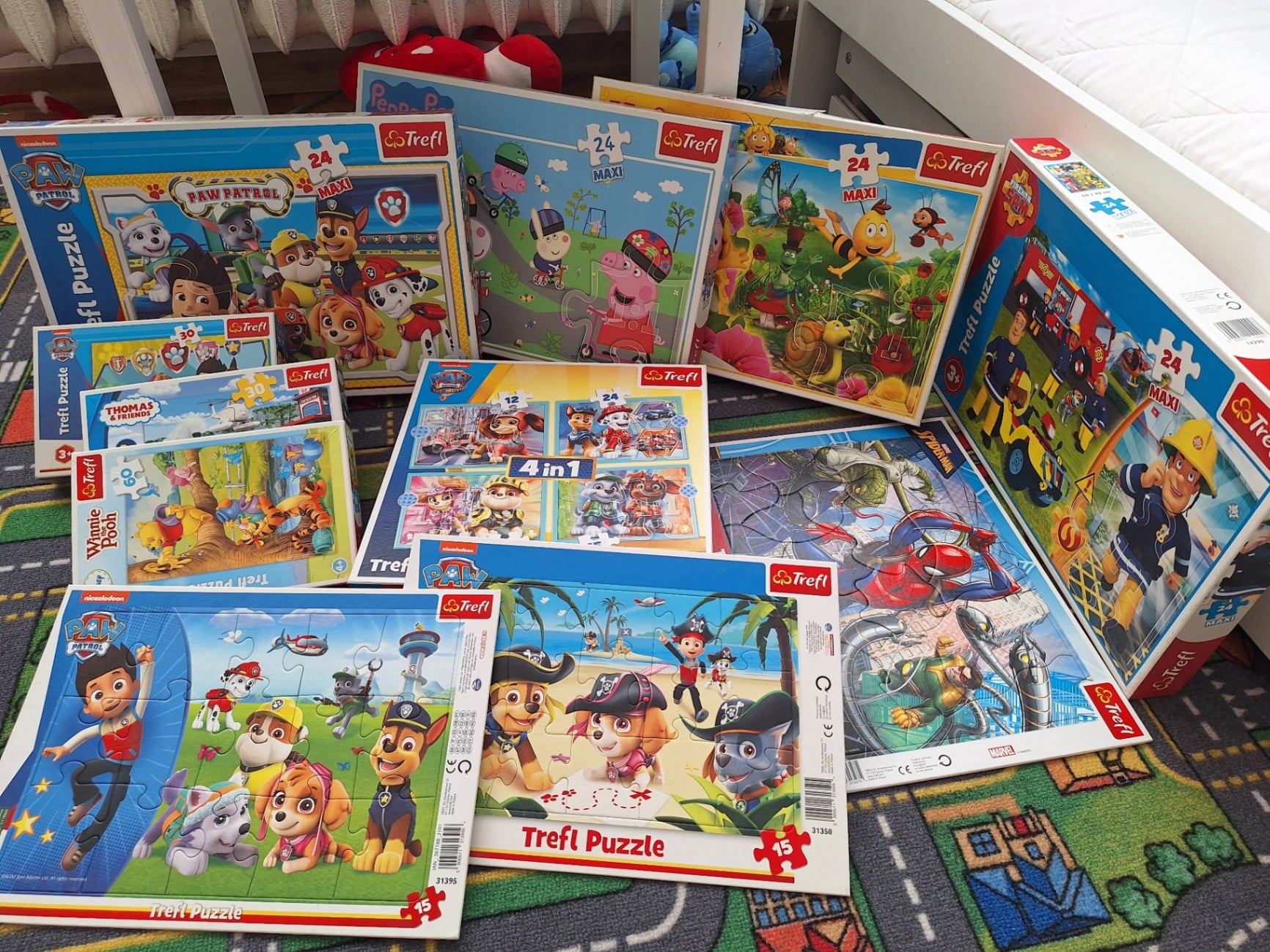 🧩 Puzzle Trefl – zestaw dla dzieci (11 pudełek) Sprzedam zestaw puzzli Trefl z ulubionymi bajkami: Psi Patrol, Świnka Peppa, Strażak Sam, Pszczółka Maja, Tomek i Przyjaciele, Kubuś Puchatek, Spider-Man i inne. Wszystkie w bardzo dobrym stanie, kompletne – tylko w jednym (Thomas & Friends) brakuje jednej części. Syn już z nich wyrósł, więc sprzedajemy do skarbonki 😊 👉 Cena za całość: 70 zł Odbiór osobisty Mrowino